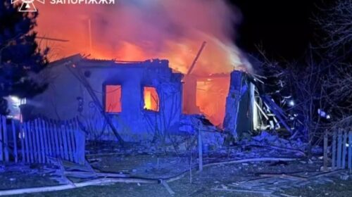 Вночі, 22 березня, російські війська здійснили масований обстріл безпілотними літальними апаратами по одному із сіл Запорізького району.