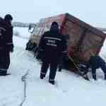 На трассе Днепропетровщины грузовик слетел со скользкой дороги в кювет