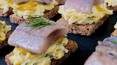 Наближення Нового року – час для святкувань, зустрічей з близькими та, звісно ж, для смачної їжі. Однією з найпопулярніших новорічних закусок є оселедець, з якого, зокрема, можна приготувати оригінальні бутерброди. Інгредієнти: чорний хліб; філе слабосоленого оселедця; яйця; майонез; петрушка та кріп. Приготування Намагайтеся нарізати хліб на порційні кубики так, щоб шматочки були невеликими. Обсмажте їх на пательні з додаванням рослинної оліїї (лише з одного боку). Відваріть яйця, обчистіть їх і натріть на тертці. Додайте подрібнену петрушку та кріп. Приправте цю суміш майонезом і добре перемішайте, щоб отримати однорідну намазку. Розпочинайте…