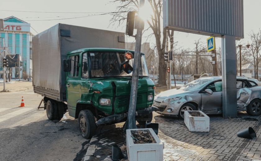 Читати даліНа вулиці Січових Стрільців у Дніпрі вантажівка зіткнулась з Renault та вʼїхала у світлофор: подробиці