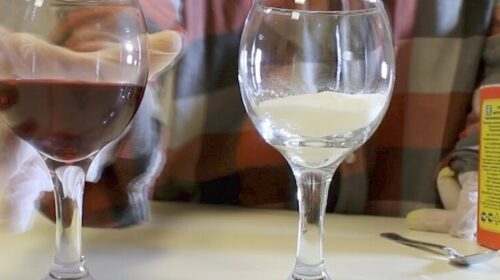 Візьміть трохи соди (буквально щіпку) і насипте її в тарілку.Додайте чайну ложку вина і спостерігайте.Якщо вино натуральне, його колір зміниться. Це пов’язано з реакцією органічних кислот, які містяться в справжньому вині. А якщо нічого не сталося – є привід замислитися, чи не тримаєте ви в руках підробку.