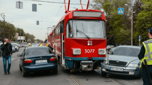 На проспекті Богдана Хмельницького у Дніпрі трамвай протаранив три автівки: подробиці