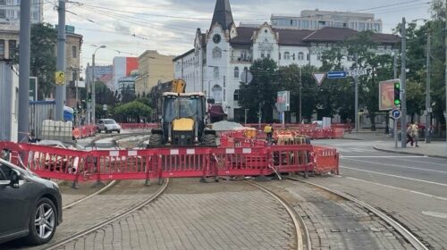 У центрі Дніпра продовжується масштабна реконструкція трамвайної колії маршруту №1, через що кардинально змінено роботу транспорту. Наразі роботи ведуться на одній із головних ділянок — біля ЦУМу, на перетині проспекту Дмитра Яворницького з вулицями Короленка та Володимира Мономаха. На локації працює спецтехніка, а будівельний майданчик захищено червоними бар’єрами — для безпеки пішоходів і безперебійної роботи ремонтників. Стару колію вже частково демонтували. На її місці уклали нову бетонну основу, на яку монтують сучасні трамвайні рейки. Роботи проводять у посиленому режимі, щоб якнайшвидше відновити нормальний рух проспектом. Як курсує громадський транспорт сьогодні…