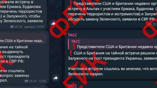 Російські спецслужби для дестабілізації ситуації в Україні запустили фейк про нібито таємну зустріч в Альпах керівника ГУР Кирила Буданова, керівника ОП Андрія Єрмака і нинішнього посла України у Великобританії Валерія Залужного, на якій нібито узгодили «заміну Зеленського». Пропагандисти найвищих рангів держави-агресора росії разом з іншими численними помийно-вигрібними медіаресурсами Кремля масово поширюють дезінформацію про начебто таємну зустріч нібито в Альпах українських військових і державних діячів з представниками США та Великої Британії, повідомляє Головне управління розвідки МО України. «Склепана на коліні серґєя наришкіна та брендована “службой внєшнєй развєдкі” (СВР) держави-агресора росії брехня…