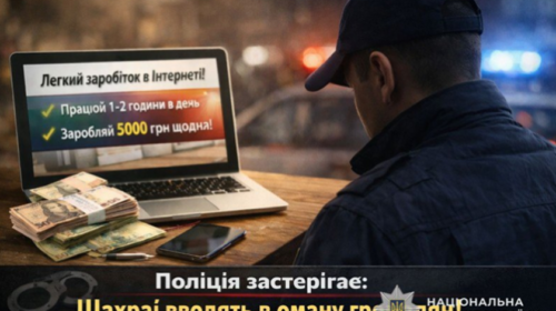 Читати даліПоліція попереджає: «прибуткові завдання» в інтернеті можуть призвести до втрати коштів