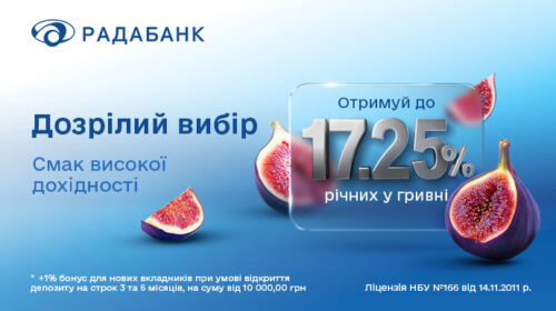 Отримуйте до 17,25% річних у гривні з депозитами від Радабанку. Спеціально для нових клієнтів: