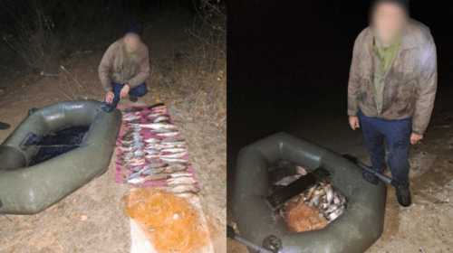 60-річний чоловік на гумовому човні здійснював вилов водних біоресурсів за допомогою сітки. Так, він встиг наловити 69 рибин загальною масою 19 кілограмів, серед яких – карасі, окуні, плітка, судаки, лящі, голавль та плоскирка.