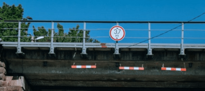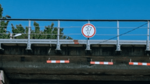 На мосту висить знак, який вказує на обмеження по висоті. Але на цій ділянці водії часто ігнорують його та ризикують.