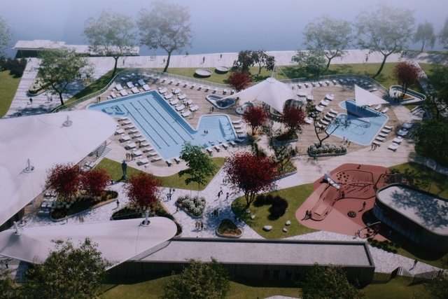 Великий відпочинковий комплекс з двома відкритими басейнами – для дітей та дорослих матиме площу 2,7 гектара. Його планують звести на місці тенісних кортів, на схід від СК «Восход».
