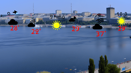 Після обіду, о 12:00, температура знову підніметься до 29 градусів. Південно-західний вітер дме зі швидкістю 3 м/с, що приносить легкий вітерець, який полегшить спеку. Вологість повітря знизиться до 55%, що зробить погоду ще комфортнішою для перебування на вулиці.