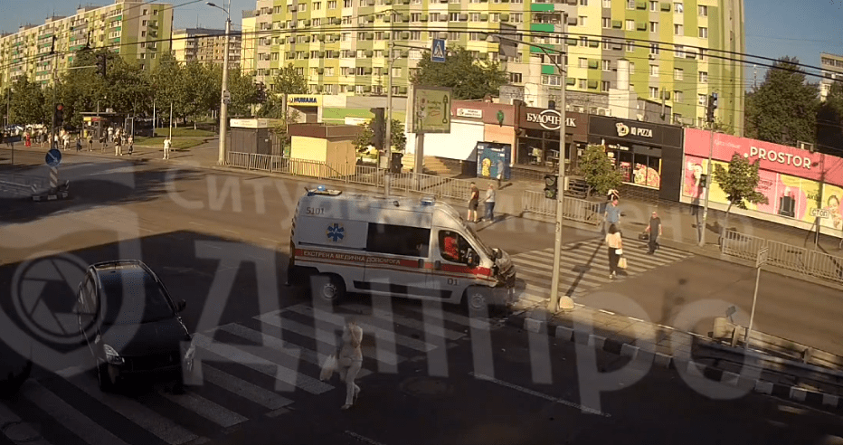 На проспекті Слобожанському швидка їхала на допомогу з мигалками. Але з прилеглої вулиці виїхала автівка і сталося зіткнення. Про це повідомляє Ситуаційний центр Дніпра.