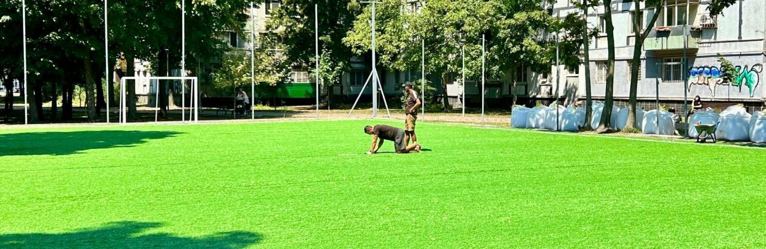 У 2024-му оновили дитячий майданчик, а цьогоріч узялися за спортивну частину — оновлюють футбольне поле. А саме:
