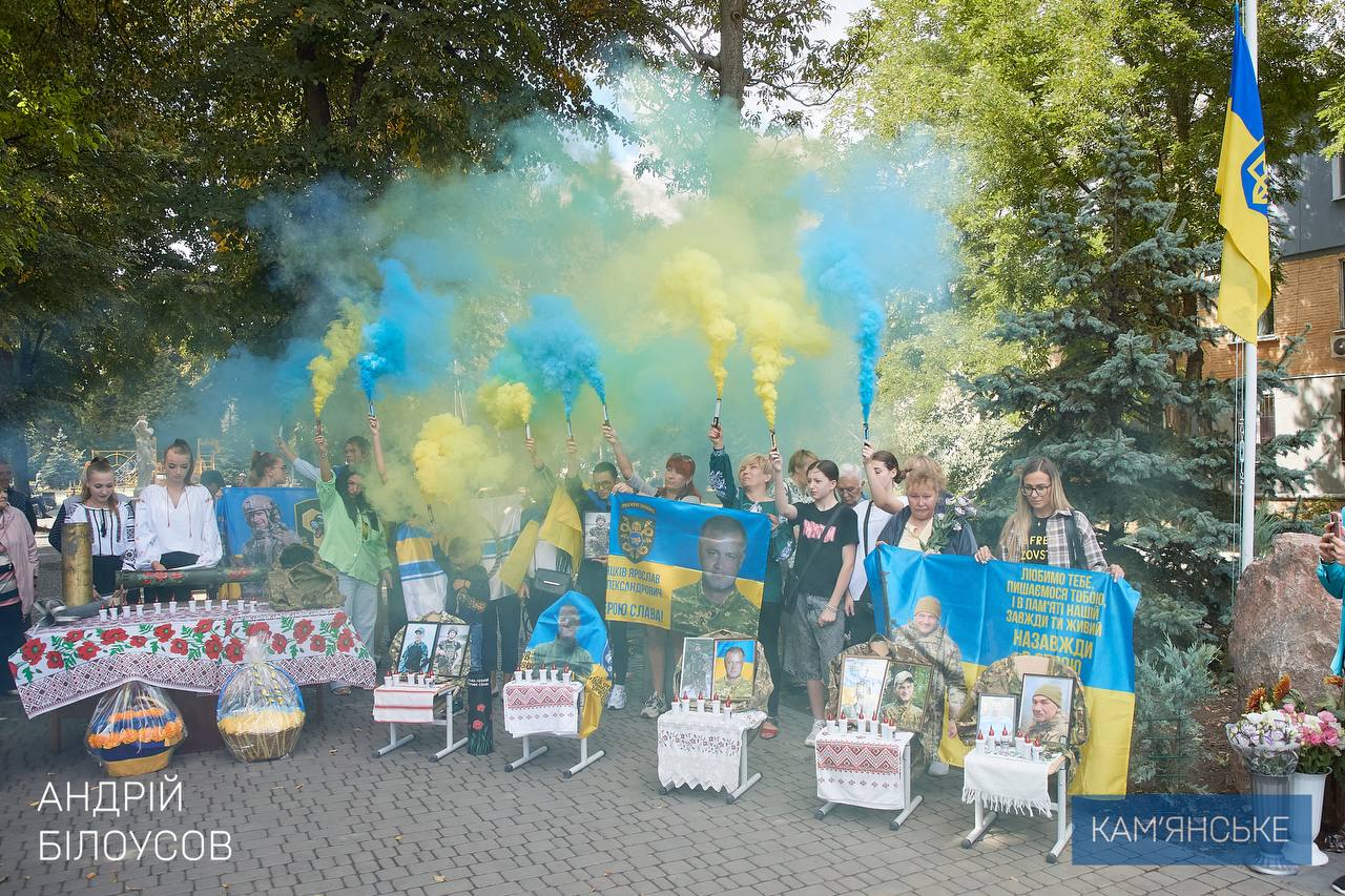 Міський голова Камʼянського Андрій Білоусов разом із начальником районної військової адміністрації Олегом Гапічем, родинами полеглих Захисників, представниками ГО «Голос Героїв», мешканцями Південного району, духовенством та громадськістю відкрили пам’ятний знак на честь захисників з Південного району, які стали щитом для України та віддали найдорожче — своє життя за Батьківщину.