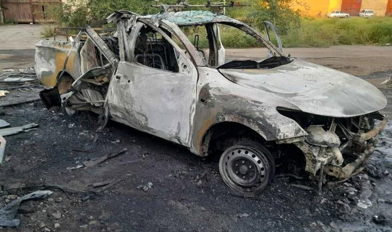 Безпілотник рф влучив у службову автівку — вона згоріла вщент разом із усім обладнанням. Працівники встигли врятуватися і ніхто не постраждав