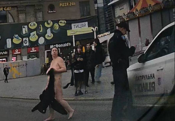 Сьогодні по центру Дніпра гуляла повністю оголена жінка.