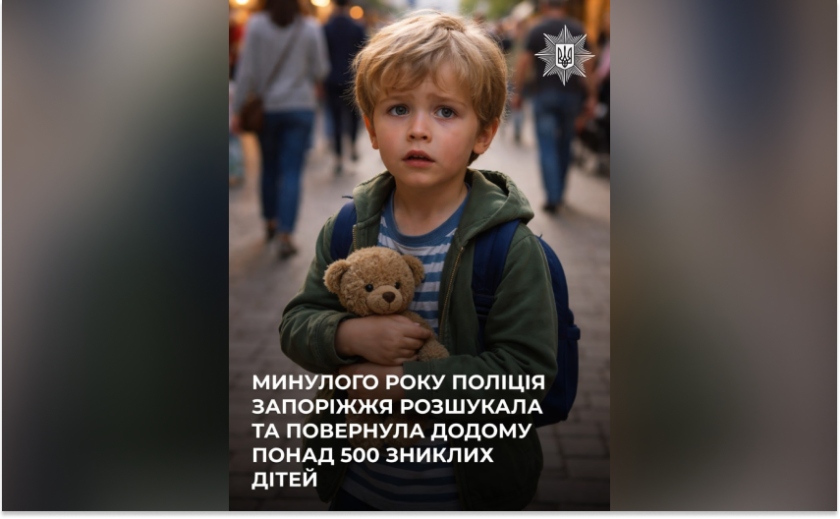 Впродовж минулого року підрозділи поліції Запорізької області встановили місцеперебування та повернули до родин 561 зниклу дитину. У більшості випадків дітей вдавалося знайти протягом першої доби після звернення.
