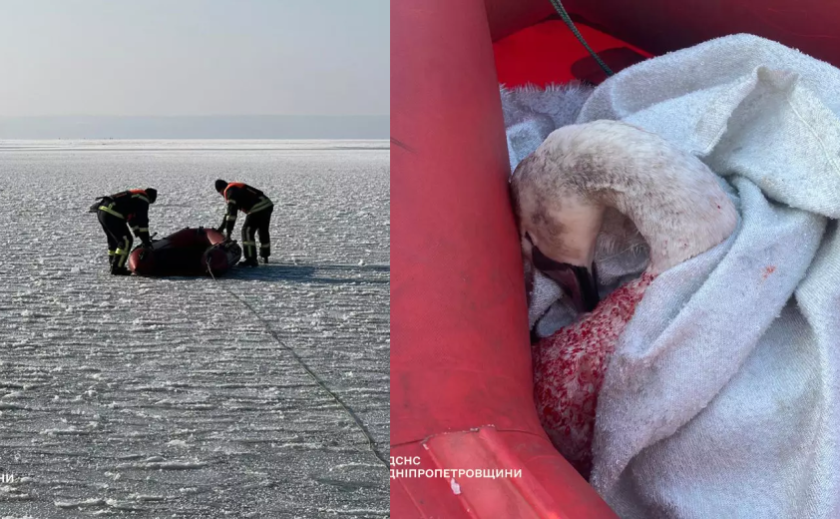 У Кам’янському надзвичайники врятували лебедя, який примерз до криги
