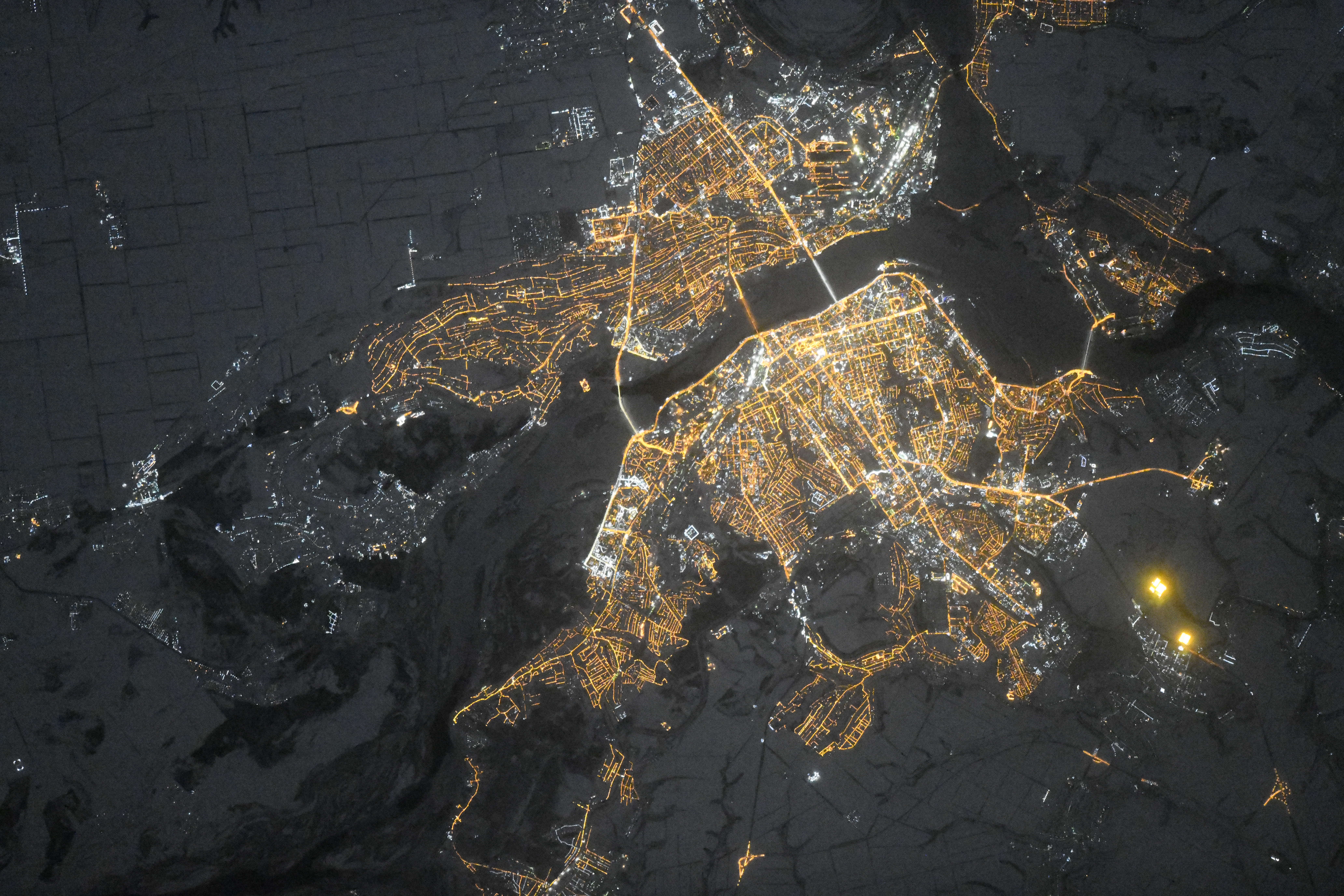 Весь город, как на ладони, светящийся ночными фонариками попал в объектив космонавта Олега Кононенко. Он находится в составе экипажа Международной космической станции.