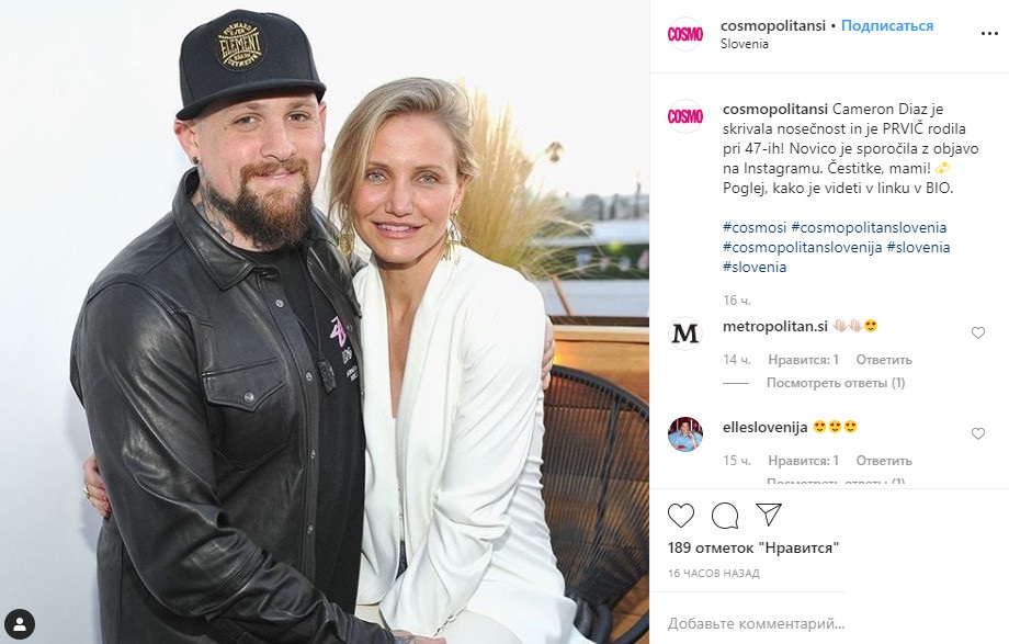 Камерон Диас и Бенджи Мэдден (скриншот: instagram.com/cosmopolitansi)